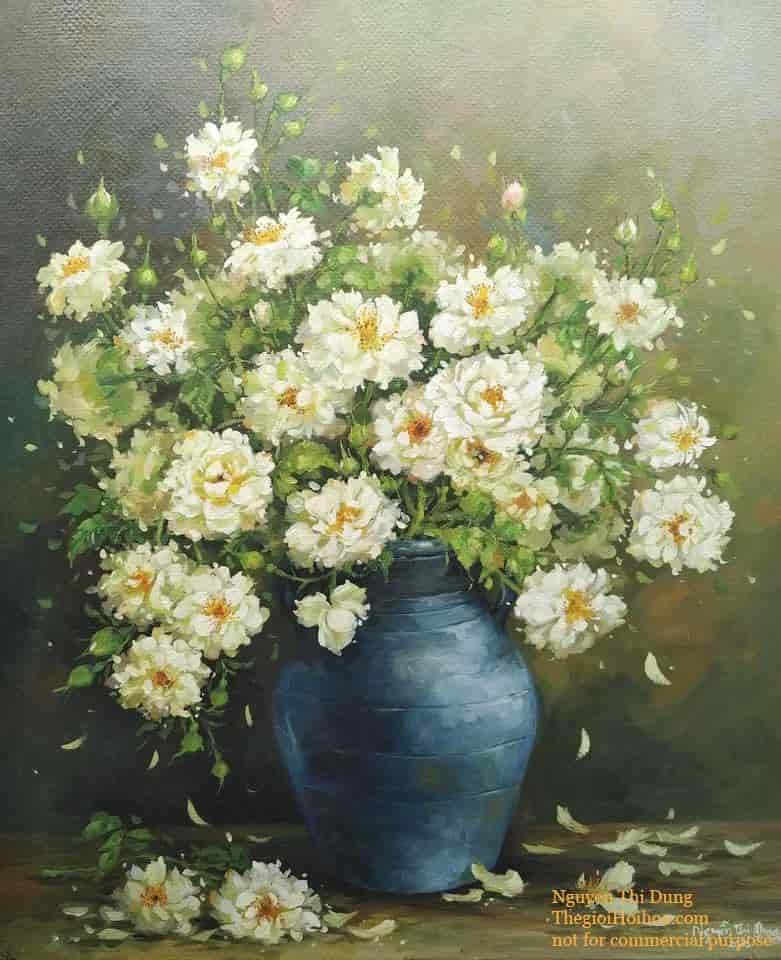 Với gam màu ấn tượng và phong cách độc đáo, tác phẩm tranh sơn dầu tĩnh vật “Bình hồng trắng” phù hợp cho việc trang trí các không gian nội thất cao cấp, sang trọng.