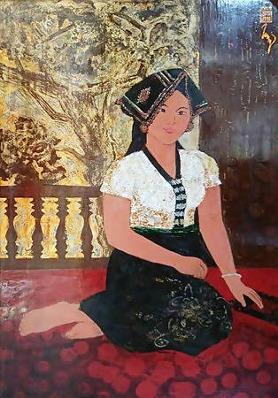 Tranh sơn mài Em gái vùng cao