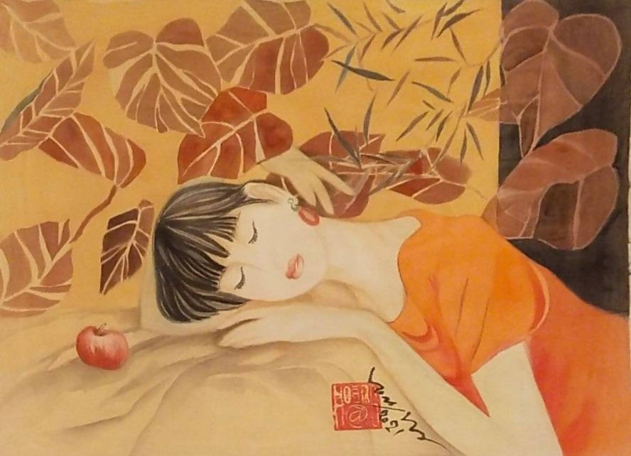 Tranh lụa vẽ chân dung thiếu nữ “Mơ”