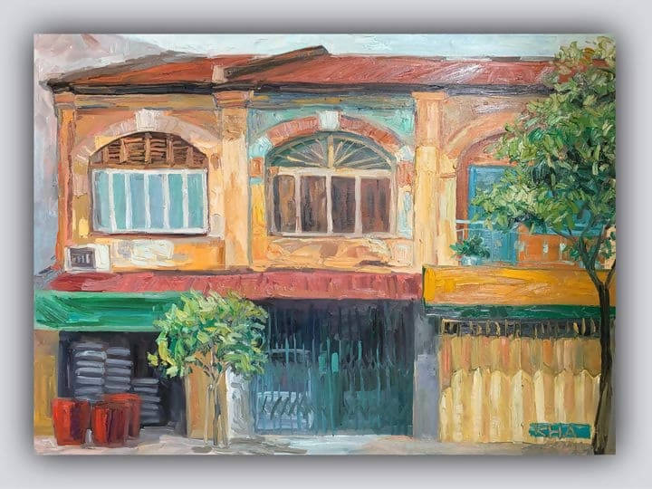 Tranh sơn dầu vẽ Sài Gòn “212-214 Võ Văn Kiệt” seri Ký ức Sài Gòn
