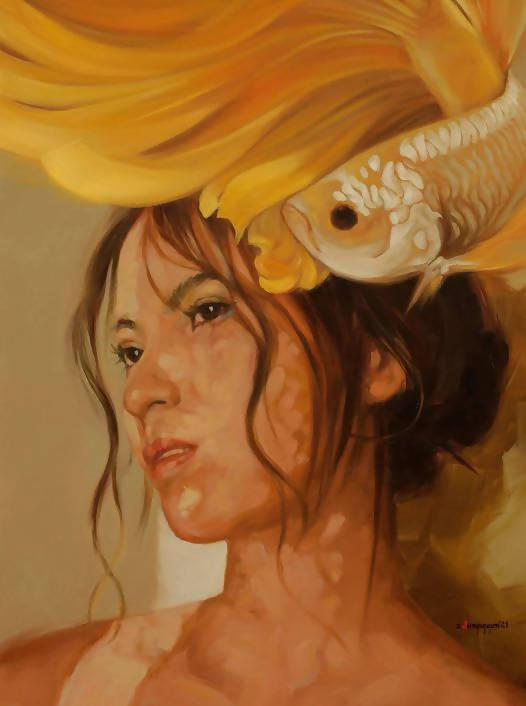 Tranh sơn dầu nghệ thuật “Cá chọi 3”