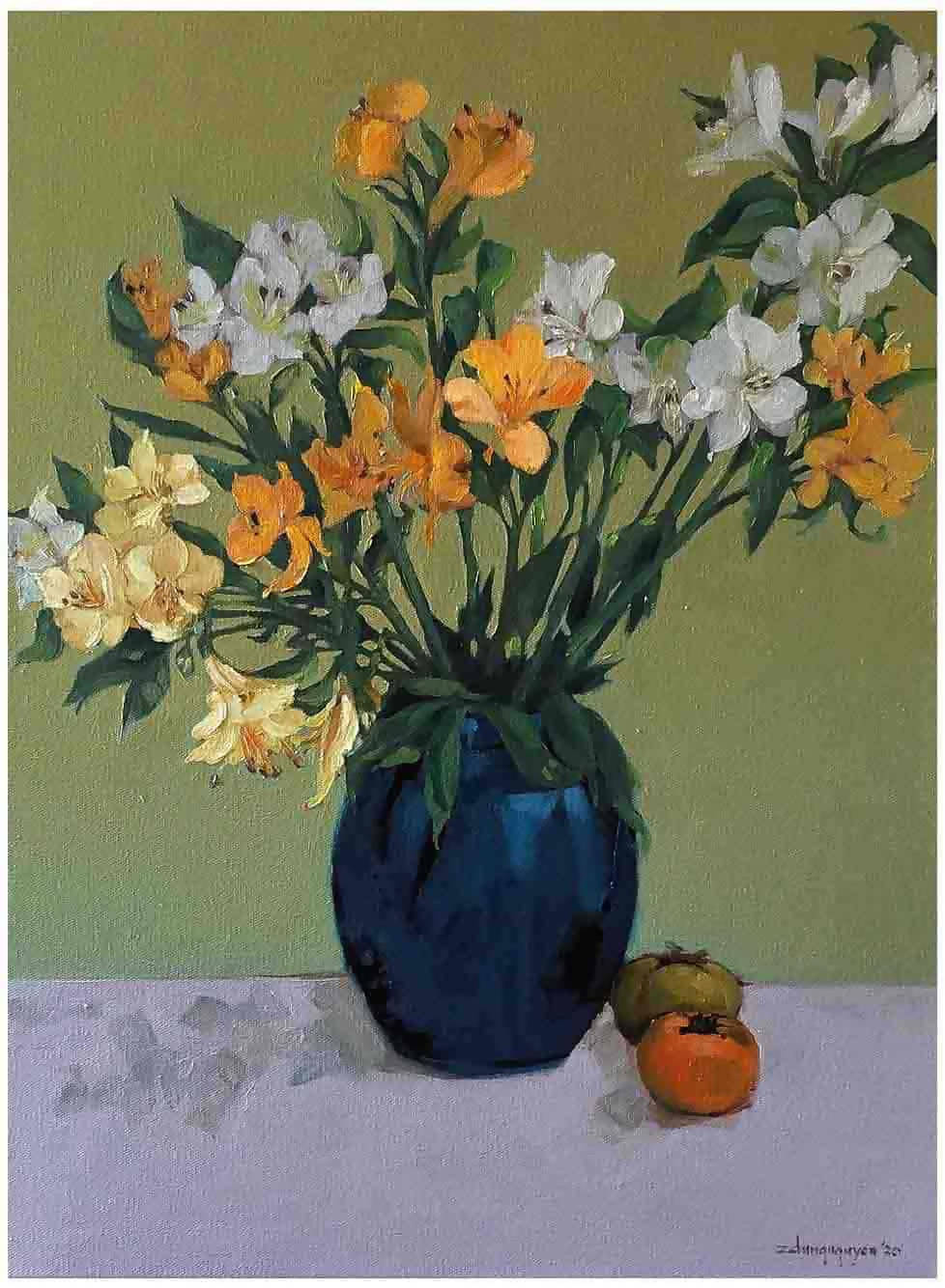Tranh tĩnh vật hoa họa sĩ Nguyễn Anh Dũng “Hoa thủy tiên”