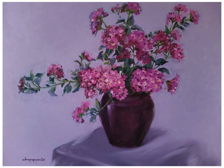 Tranh tĩnh vật sơn dầu “Hoa trâm ổi”