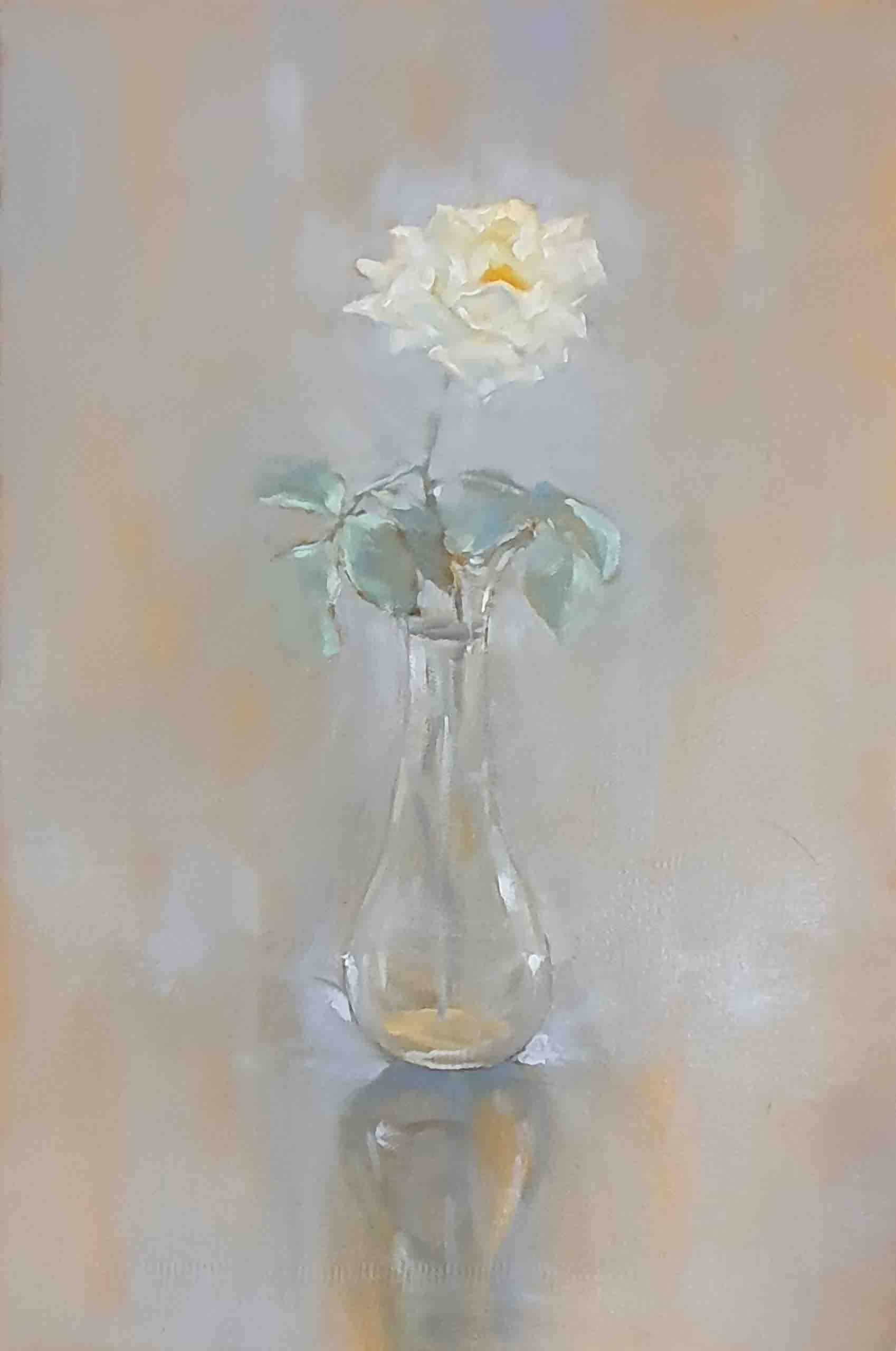 Tranh tĩnh vật sơn dầu “Lọ hồng trắng”