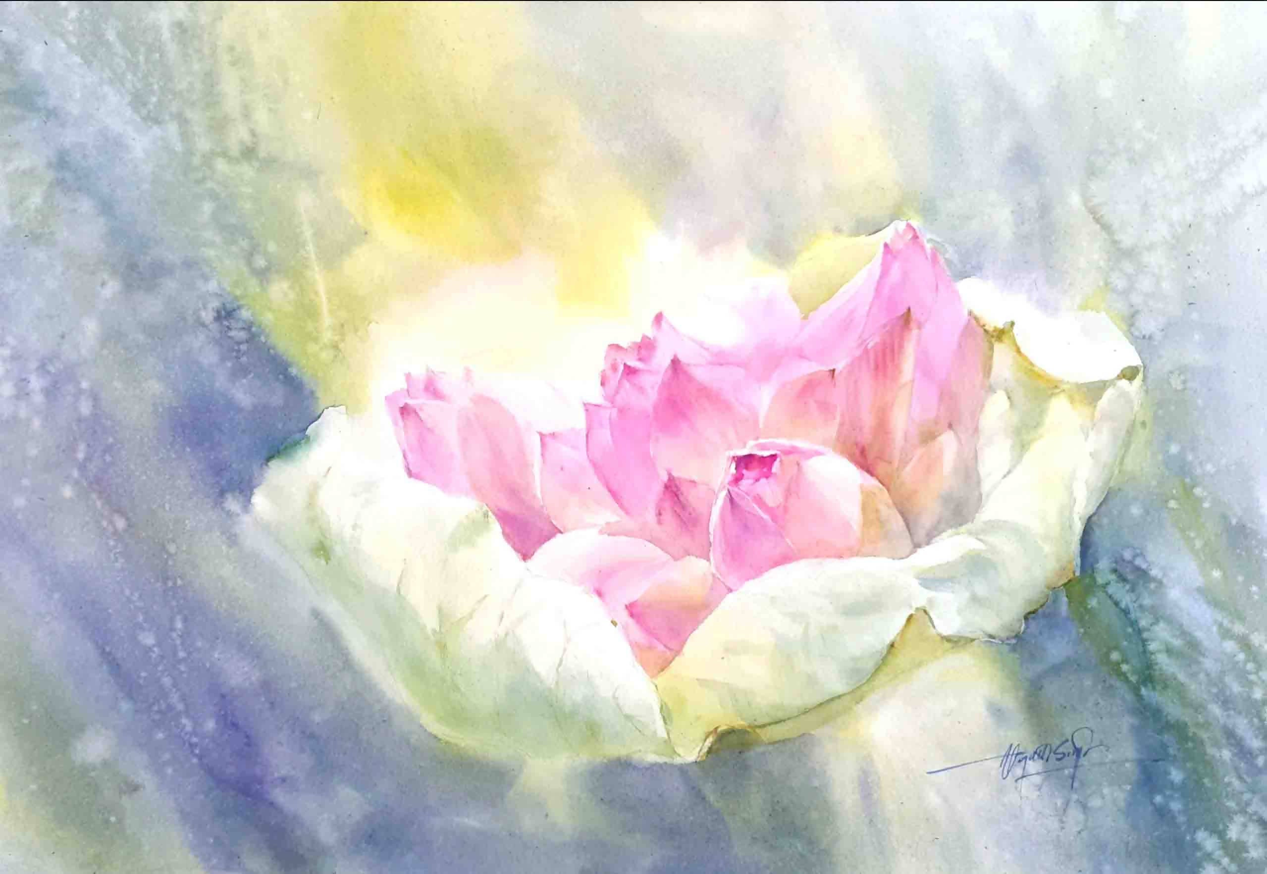 Tranh màu nước nghệ thuật họa sĩ Nguyễn Đình Đức – TP. “Nụ sen hồng”