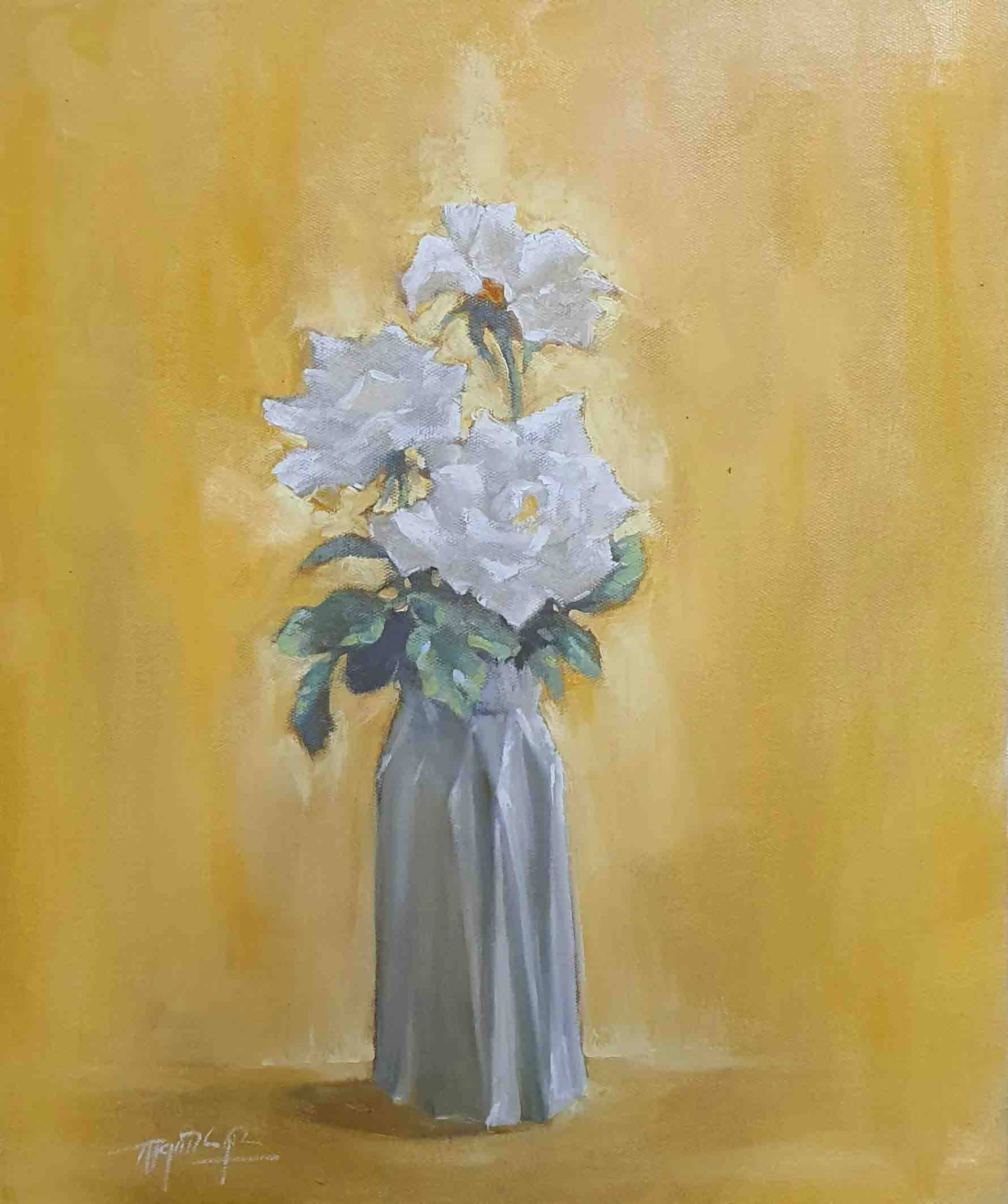 Tranh tĩnh vật sơn dầu “Tĩnh vật bình hoa hồng”