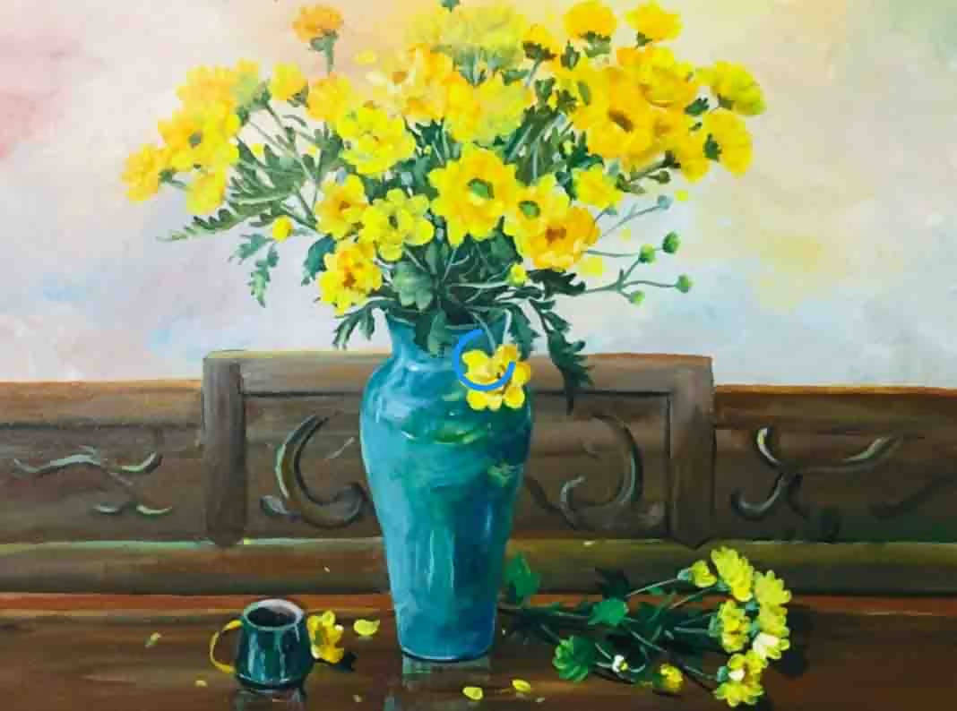 Tranh tĩnh vật hoa "Bình cúc vàng" - Ảnh 2