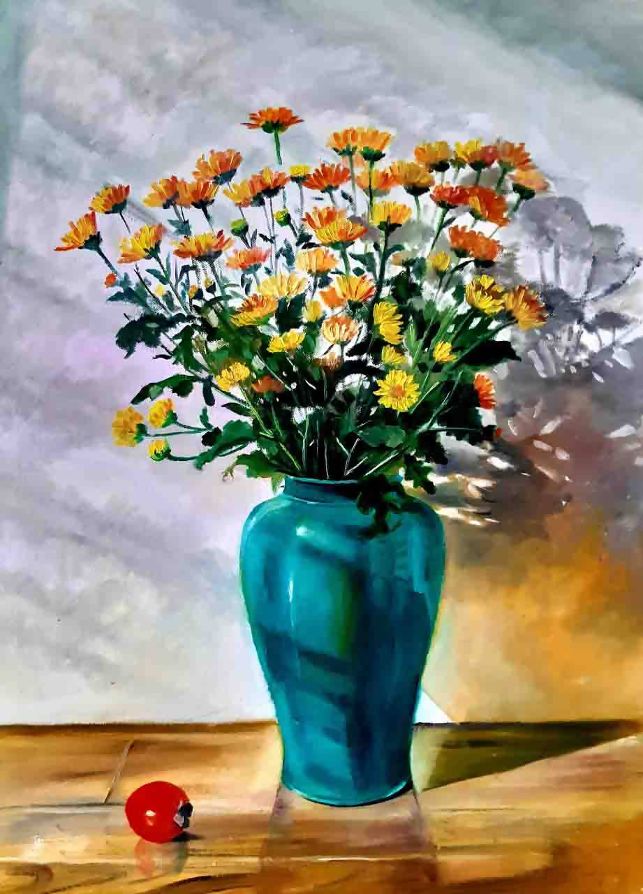 Tranh tĩnh vật hoa của họa sĩ Nguyễn Hằng “Nắng chiều”