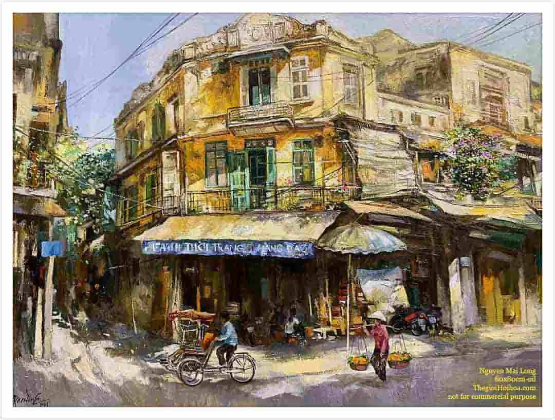 Tranh sơn dầu phố cổ “Mùa nắng” – họa sĩ Nguyễn Mai Long