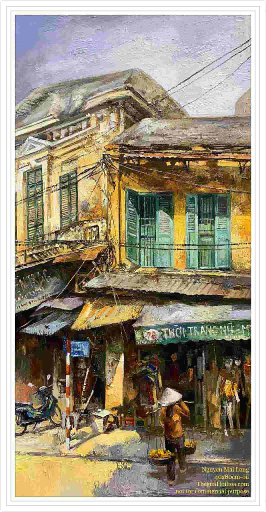 Tranh phong cảnh phố cổ Hà Nội “Nắng 04” – họa sỹ Nguyễn Mai Long
