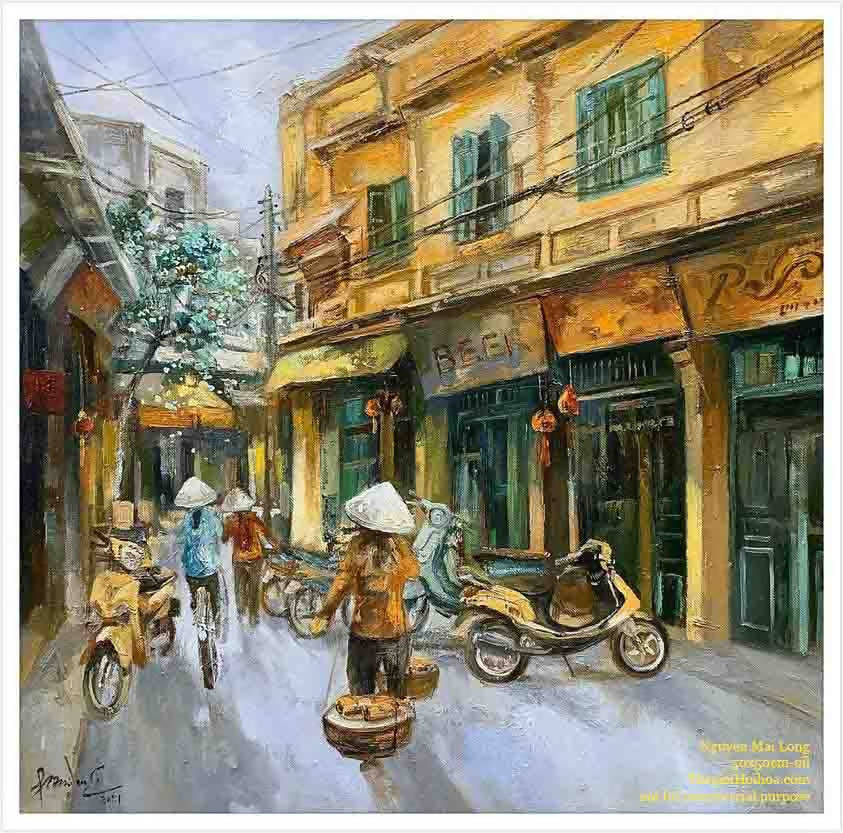 Tranh phong cảnh Hà Nội “Ngang qua phố cũ 02”
