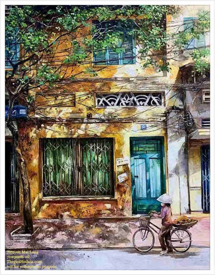 Tranh sơn dầu phố cổ “Ngày nắng 08” – họa sĩ Nguyễn Mai Long