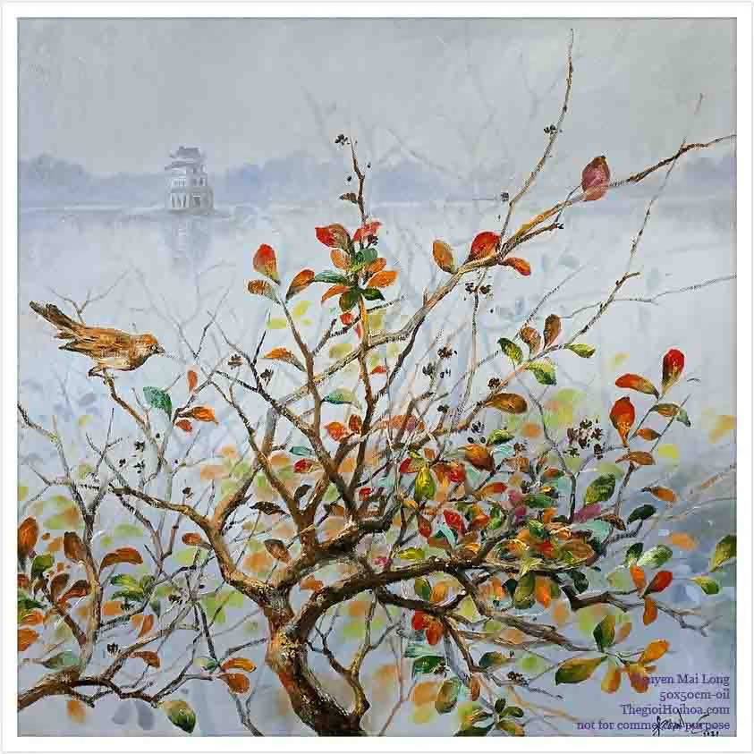 Tranh phong cảnh hồ Gươm “Sắc thu 04” – họa sĩ Nguyễn Mai Long
