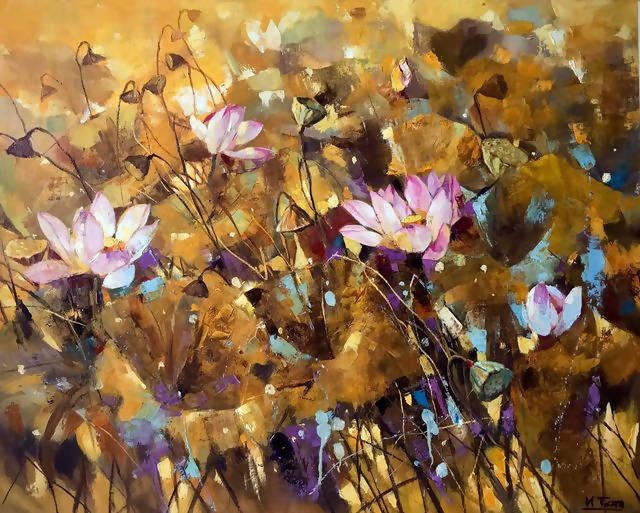 Tranh sơn dầu vẽ hoa sen “Ở cuối mùa hạ”