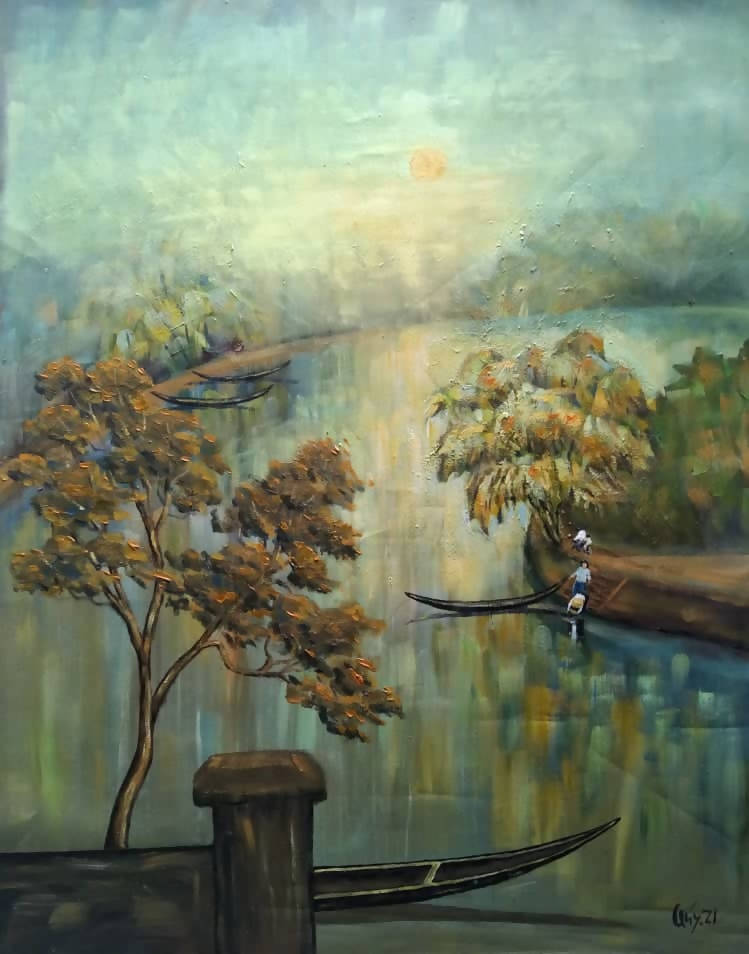 Tranh sơn dầu “Bến quê”