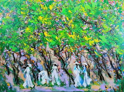 Tranh sơn dầu trừu tượng của họa sĩ Nguyễn Quang Tuấn "Mùa thiếu nữ"