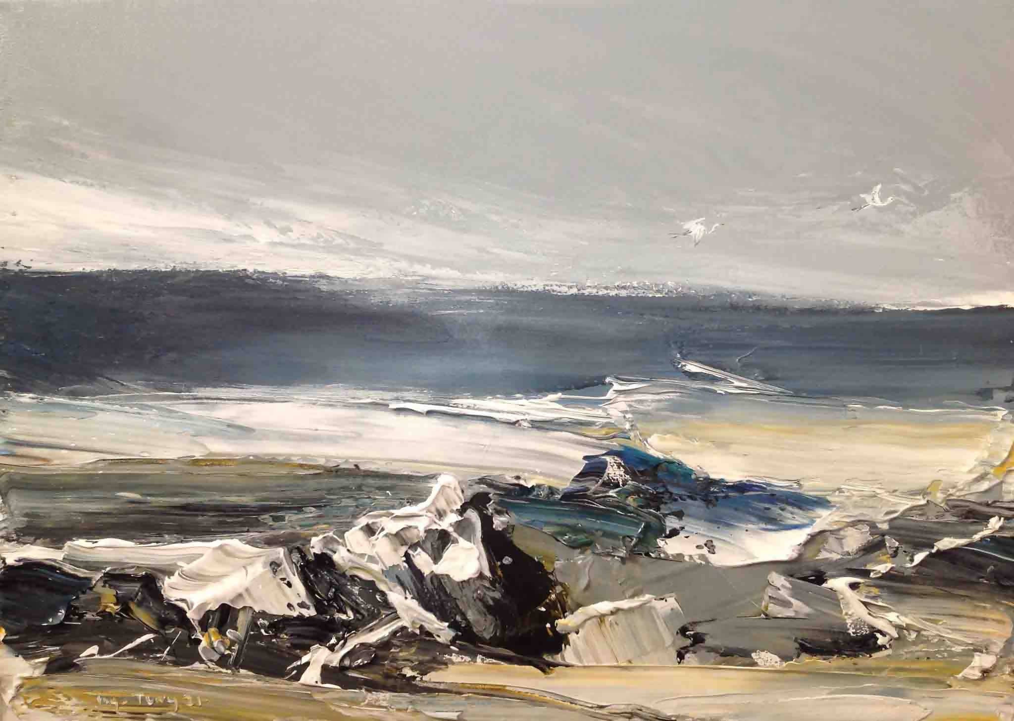 Tranh sơn dầu vẽ phong cảnh biển của họa sĩ Nguyễn Văn Tùng “Đôi bạn”