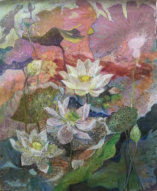 Tranh sơn dầu quê hương “Sen mùa hạ”