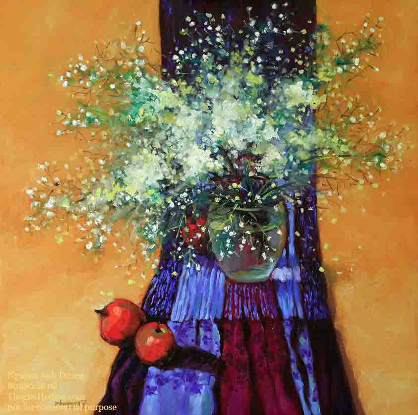 Với gam màu ấn tượng và phong cách độc đáo, tác phẩm tranh tĩnh vật “Bình hoa” phù hợp cho việc trang trí các không gian nội thất cao cấp, sang trọng.