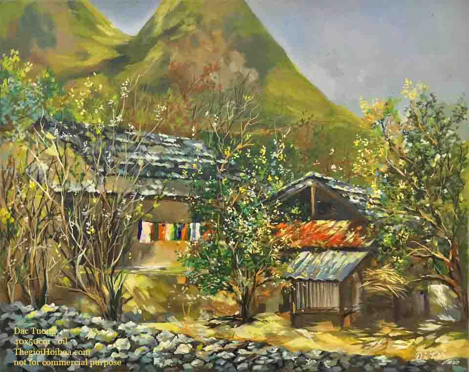 Tranh phong cảnh mùa xuân “Xuân về trên bản nhỏ 02”