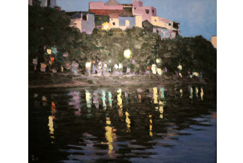 Tranh vẽ theo trường phái ấn tượng “Chiều trên hồ Trúc Bạch” – họa sĩ Phạm Luận